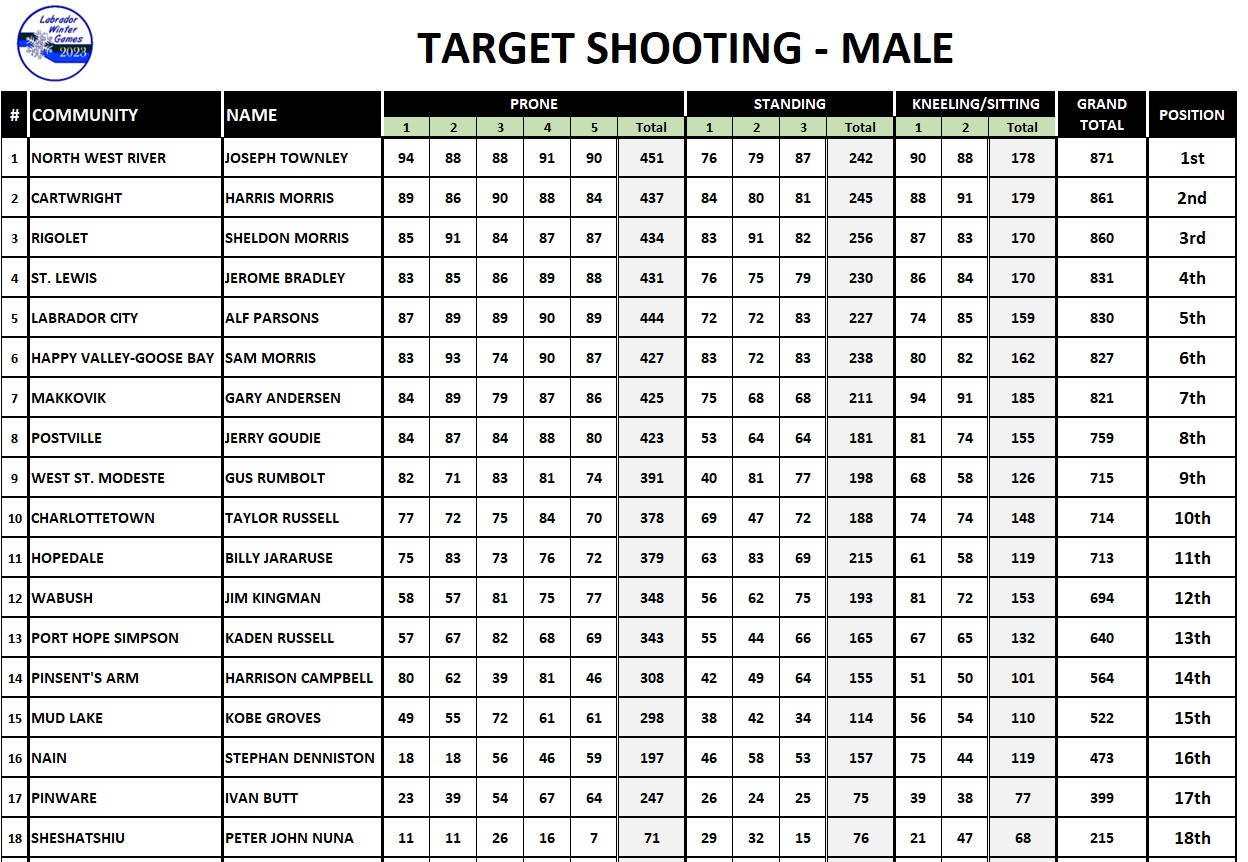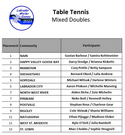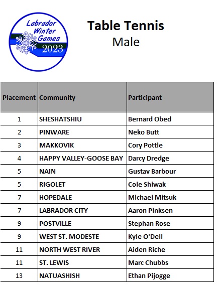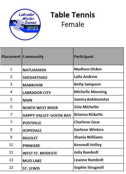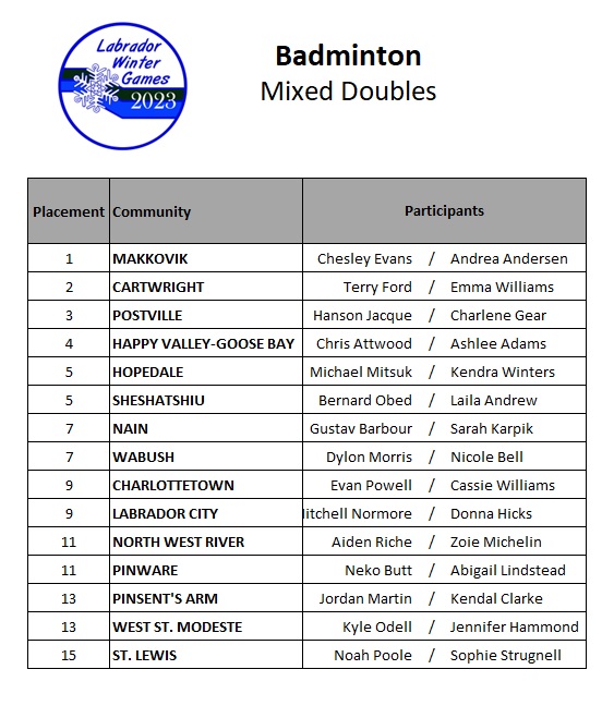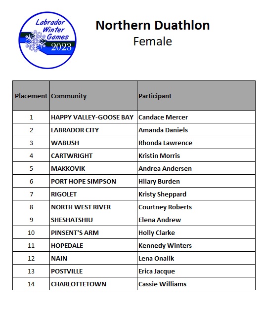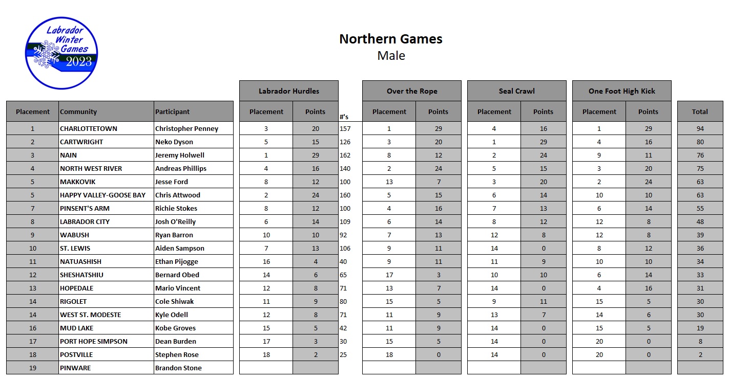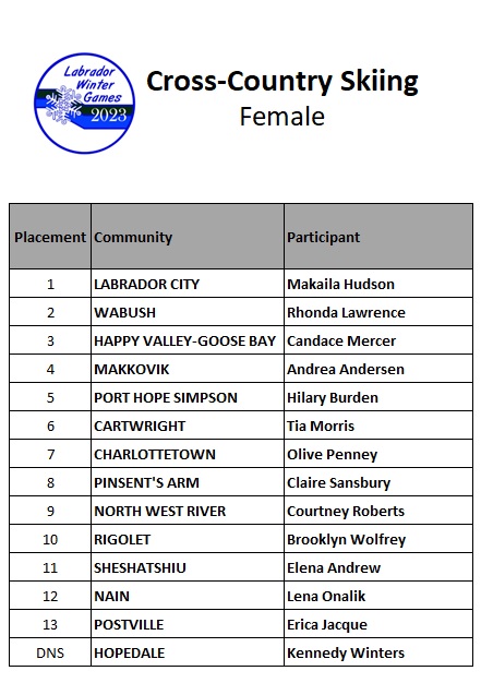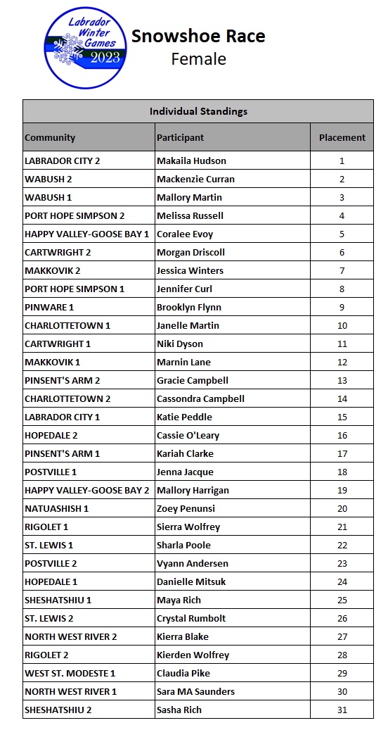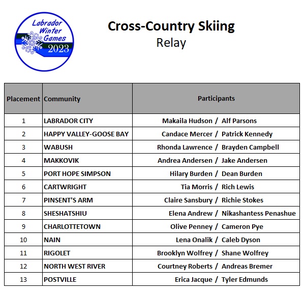 Results for the 2026 Labrador Winter Games will be available here when the Games commence in March 2026. Meanwhile, the final results from the 2023 Labrador Winter Games are shown below.